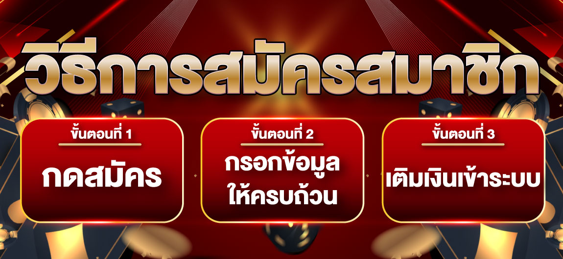 ตอบ : - กรอกข้อมูลส่วนตัวในหน้าสมัคร - ยืนยันเบอร์โทรศัพท์ - เพิ่มบัญชีธนาคารสำหรับทำธุรกรรม - รับยูสเซอร์และรหัสผ่านทันที