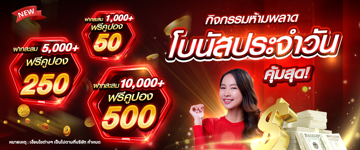 นอกจากนี้ยังมีโบนัสต้อนรับสุดพิเศษสำหรับการฝากครั้งแรก โดยจะได้รับโบนัสเพิ่มขึ้นถึง 100% ของยอดฝาก ยกตัวอย่างเช่น ถ้าคุณฝากเงิน 1,000 บาท จะได้รับโบนัสเพิ่มอีก 1,000 บาท รวมเป็นเงินที่สามารถเล่นได้ถึง 2,000 บาทเลยทีเดียว